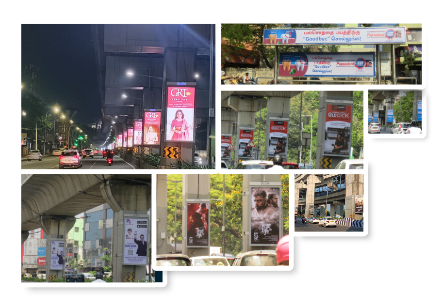 Metro Piers & Portals are strategically positioned along metro lines, offering high visibility in High-traffic areas. This prime placement ensures extensive reach across diverse demographics, providing a unique opportunity for innovative storytelling and dynamic content delivery. The large, impactful visuals are designed to capture attention, with long-duration viewership due to their prominent size and strategic positioning. Thanks to the linear nature of metro travel, our advertisements move with commuters throughout their journey, resulting in repeated brand exposure. This continuous exposure maximizes brand recall and ensures that your message stays top of mind, making it an ideal solution for engaging a wide audience consistently
